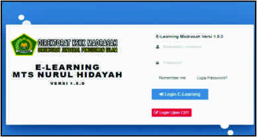 elearning madrasah adalah sebuah aplikasi produk madrasah yang ditujukan untuk menunjang proses pembelajaran di madrasah dari mulai Raudlatul Athfal (RA), Madrasah Ibtidaiyah (MI), Madrasah Tsanawiyah (MTs), Madrasah Alaiyah (MA), agar lebih terstruktur,menarik dan interaktif. Merujuk hal tersebut MTs Nurul Hidayah Krian menerapkan elearning madrasah untuk menunjang pembelajaran daring online, sebagaimana yang diamanahkan Kementerian Agama RI para siswa madrasah agar Belajar Dari Rumah (BDR) disaat pandemi Covid melanda.